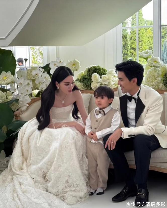 婚礼现场的对比更扎心,黄子韬那场婚礼乱糟糟的,各种颜色的花堆在一起,看着有点 “精致的土气”。黄子韬穿的礼服松松垮垮,显得他身高都缩水了,像一米六似的;徐艺洋的婚纱也就勉强能看,质地摸着就很廉价。而 Mai 的婚礼完全是另一个画风,白色帷幔配着白色鲜花,色调统一又唯美。两人的礼服一看就是精心选的,新郎穿得合身又精神,Mai 的绸面婚纱简洁又高贵,质感直接拉满~