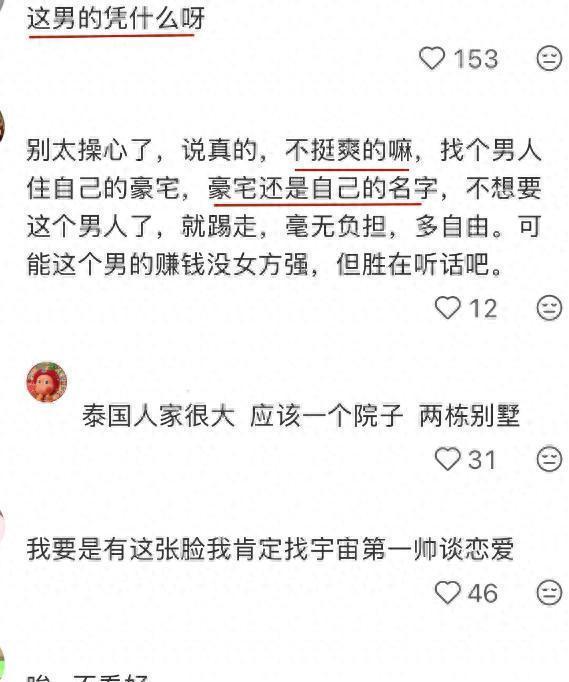 不过最让人震惊的还不是钻戒和婚礼,而是新郎的操作!他特意买下 Mai 名下 1600 平的土地,在上面盖了新房,房产证还只写了 Mai 的名字,自己就只有使用权而已~ 这下谁还不懂 Mai 为啥愿意嫁呀,颜值不够,诚意和实力来凑嘛!